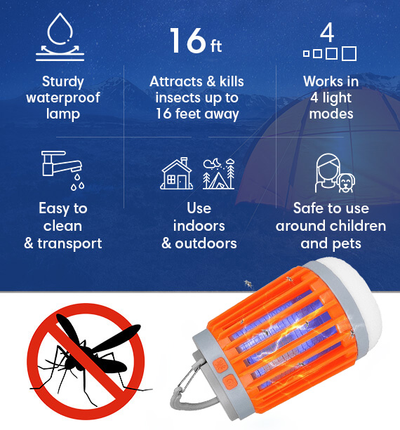 "As a family we love barbecues & bonfires, however the bugs & mosquitoes are always a pain. I saw my neighbor using this Zap Shield and got the details from him to buy it. It arrived in just 5 days (no shipping delays) and since then - we have not had to deal with flies, itchy ants & mosquitoes. The in-built lamp also works great - just hang it and it sets the mood for the evening while being bright enough!"